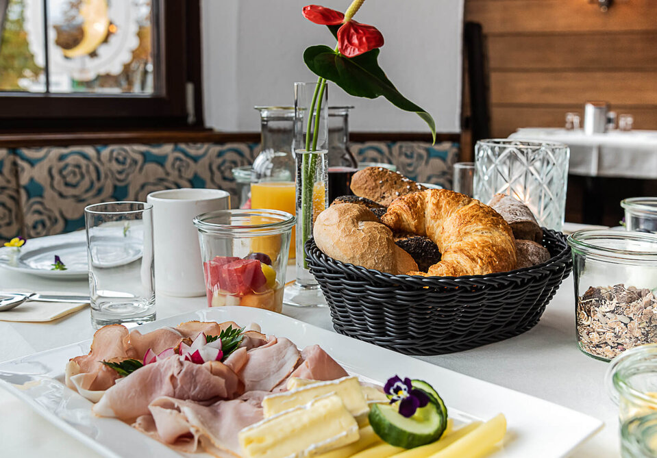 Starten Sie Ihren Tag mit einem köstlichen Frühstück im Hotel Mondschein Innsbruck. Unser reichhaltiges Frühstücksbuffet bietet eine vielfältige Auswahl an regionalen und frischen Produkten aus Tirol.