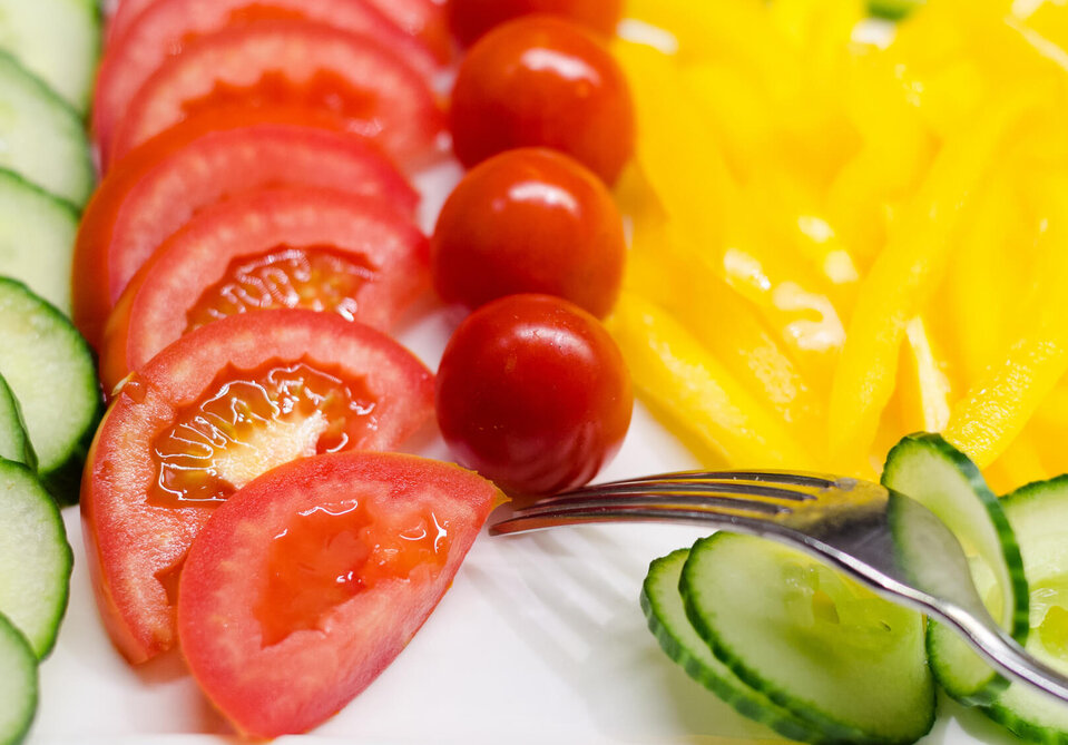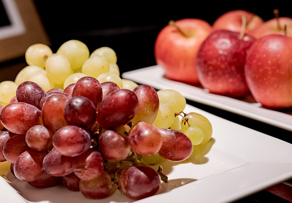 Hummus und vegane Aufstriche, frisches Obst und Gemüse